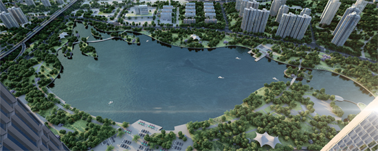 夢澤湖公園位于武漢中央商務區規劃的中心軸線南端,總占地面積約49.7公頃,湖水面積約23公頃,是武漢最大的人工水體公園。夢澤湖公園是武漢CBD商務核心區與周邊功能區的過渡和緩沖地段,規劃布局為湖中有島嶼,湖邊設碼頭,湖岸四周建環湖景觀帶,形成具有生態效用的大型公共開敞水域空間,是王家墩區域及全市的娛樂休閑中心,是武漢中央商務區綠地系統中的綜合公園之一。
