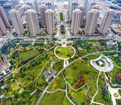 王家墩公園位于武漢CBD商務核心區中心軸線北端,總占地面積約12萬平方米,主峰15米。公園主體布局為“一軸、四區、五大特色”景觀結構, “一軸”為延續商務區南北向的軸線,由入口大草坪、疊泉和山峰所形成的“景觀虛軸”;“四區”為入口休閑區、臺地花園區、峽谷體驗區和山林游賞區組成四大景區;“五大特色”主要體現山峰的層巒疊嶂、峽谷的幽深迷人、溪流的蜿蜒曲折、臺地的錯落有致、草坪的蔥郁疏朗。王家墩公園連接商務啟動區和核心區生態走廊,與軸線上的夢澤湖水體公園共同形成 “山南水北”的經典城市意象,營造“山秀、水清、谷迷、瀑驚”的園林意境,是武漢CBD的“綠肺”和天然“氧倉”。