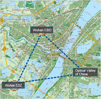 By extending across the two most developed districts in Hankou area, namely, Jianghan District and Qiaokou District, Wuhan CBD has its unique surroundings. On its north lie the Hankou Railway Station and Jianghan Economic Development Zone. On the west lie the Hanxi Train Freight Station, Hanxi Building Materials Market and Qiaokou Economic Development Zone. On the south lies the business and commercial area on Jiefang Avenue. And on the east lie the financial street on Jianshe Avenue and the biggest inner-city park, Zhongshan Park. Obviously, it has convenient transportation, complete municipal infrastructure facilities and superiority in geographical position.