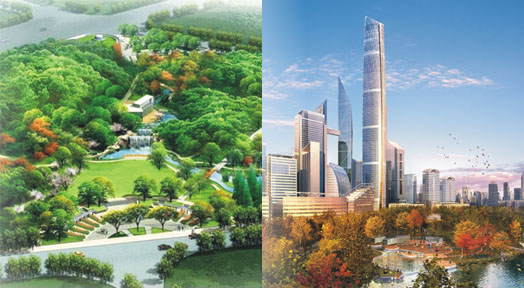 武漢CBD是國內首個通過規劃環評的CBD,至2020年,綠地總量講達到296公頃,人均綠地面積17.2平方米。 商務區內50萬平方米的人工湖—夢澤湖與占地13公頃王家墩公園南北呼應,打造綠色環保之都。